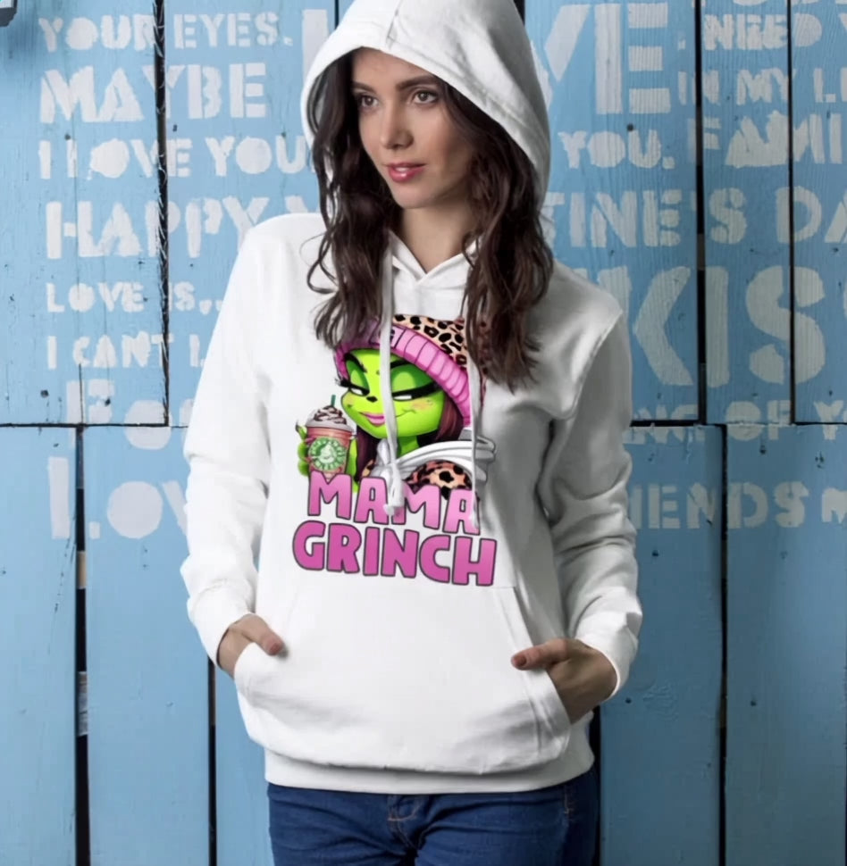 Kuschel-Hoodie aus reiner Baumwolle mit frechen Weihnachtsmotiven – perfekt für alle, die die Feiertage mit Humor nehmen! Das Design "Mama Grinch, mit Kindername" bringt Grinchmas-Vibes in deinen Kleiderschrank und sorgt garantiert für Lacher. Weich, gemütlich und ideal zum Abhängen oder als originelles Weihnachtsgeschenk für Freunde mit Sinn für Ironie. Weil manchmal braucht man einfach einen Hoodie, der genauso eigensinnig ist wie man selbst!