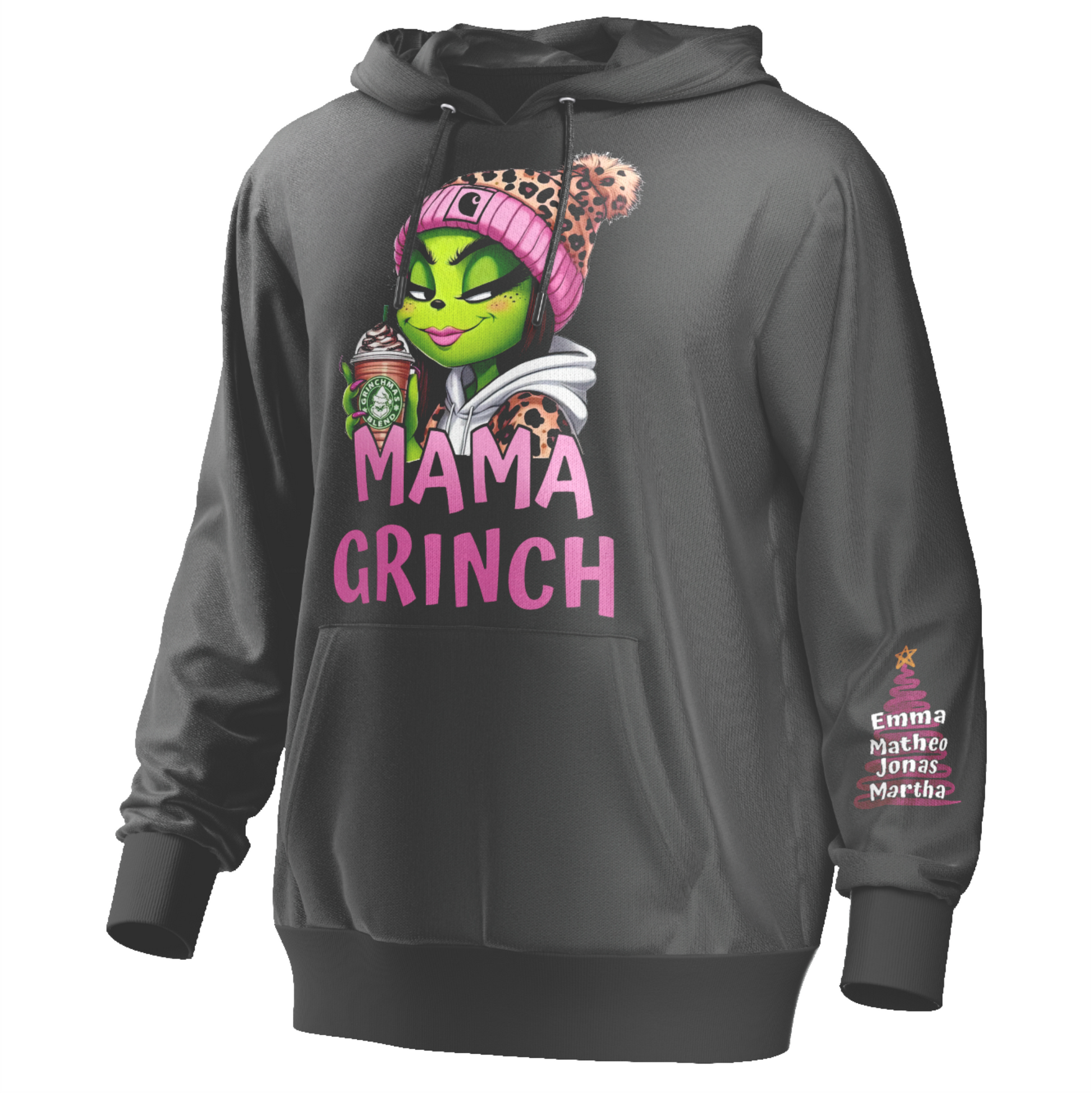 Baumwolle, Hoodie, Mama Grinch, mit Kindername, Weihnacht, Grinchmas.