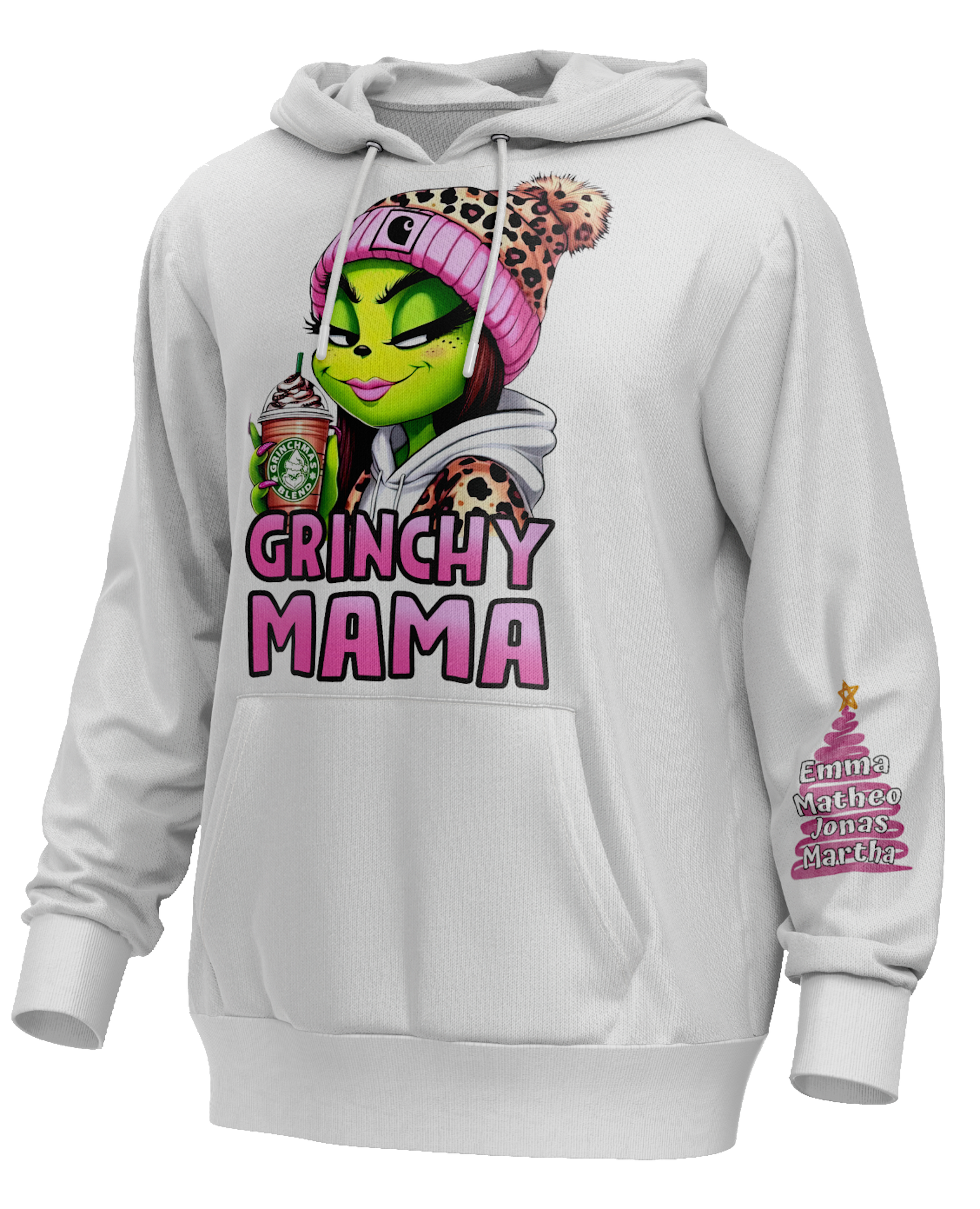 Valentinstag Baumwolle, Hoodie, Grinchy Mama, mit Kindername.