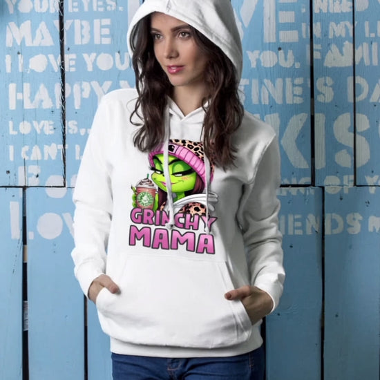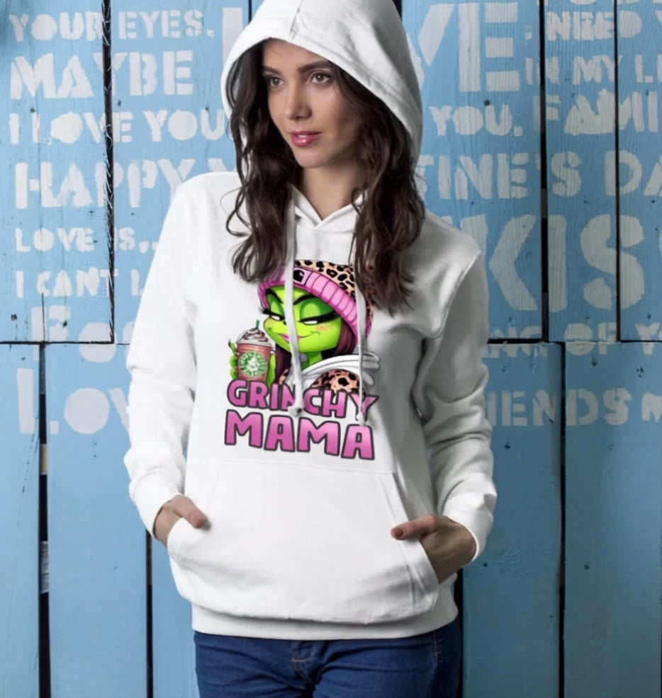 Kuschel-Hoodie aus reiner Baumwolle mit frechen Weihnachtsmotiven – perfekt für alle, die die Feiertage mit Humor nehmen! Das Design "Grinchy Mama, mit Kindername" bringt Grinchmas-Vibes in deinen Kleiderschrank und sorgt garantiert für Lacher. Weich, gemütlich und ideal zum Abhängen oder als originelles Weihnachtsgeschenk für Freunde mit Sinn für Ironie. Weil manchmal braucht man einfach einen Hoodie, der genauso eigensinnig ist wie man selbst!